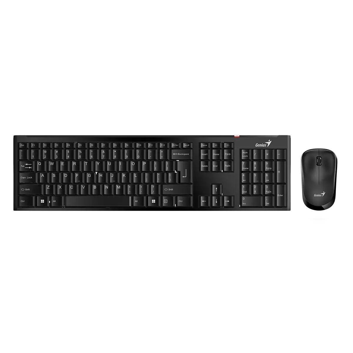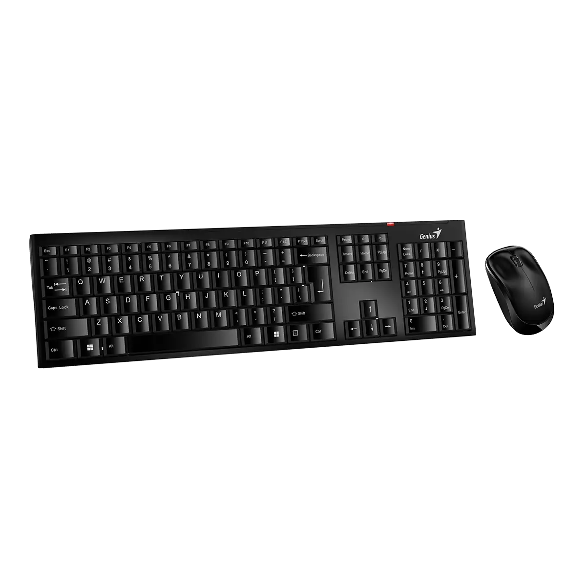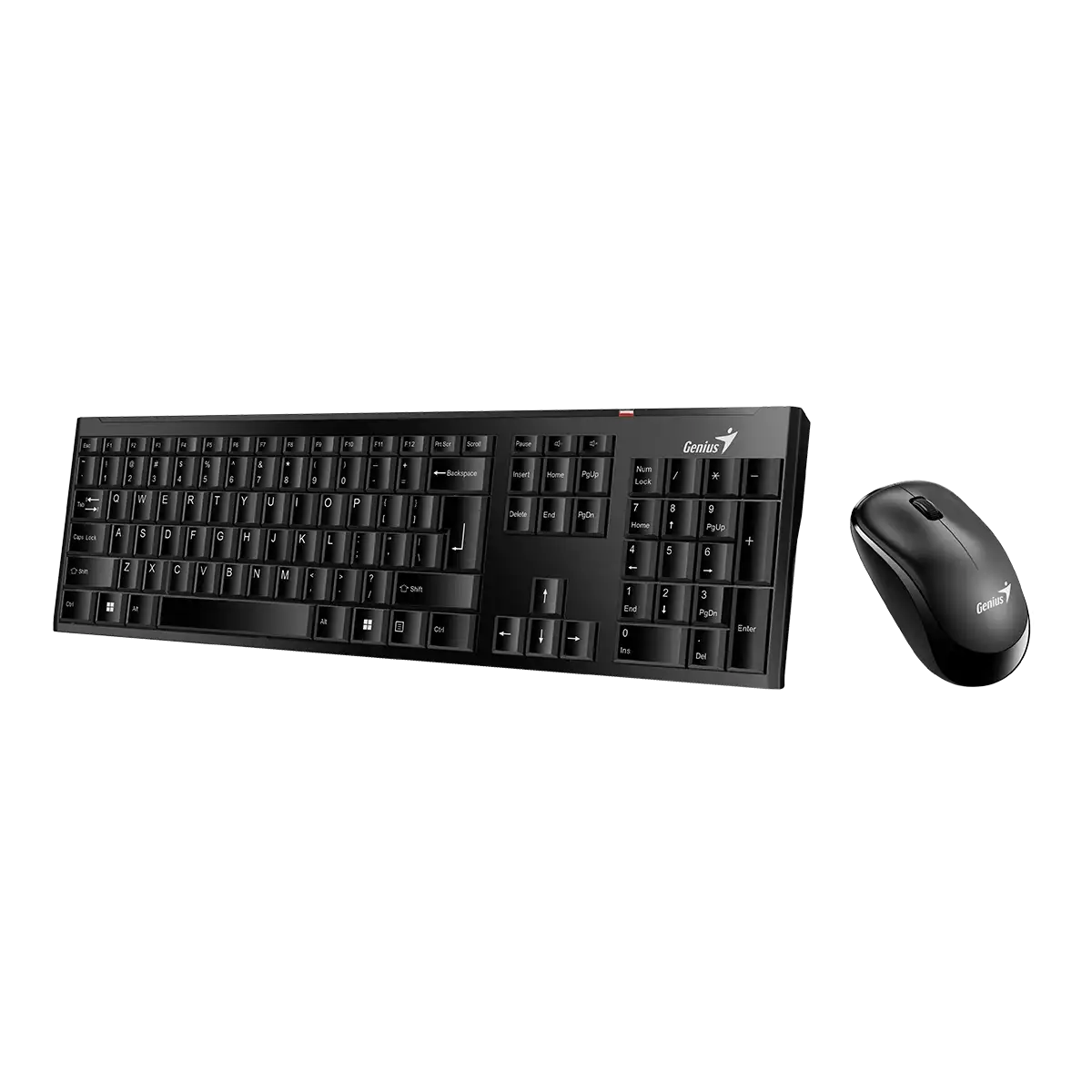 SlimStar 8000SE is a newly designed wireless keyboard and mouse combo from Genius that brings simplicity, eciency and elegance to your lifestyle. The 2.4 GHz transmission ensures anti-interference and longer operational distance. Its keyboard features an ultra slim design, with bigger keycaps for great tactile feedback.