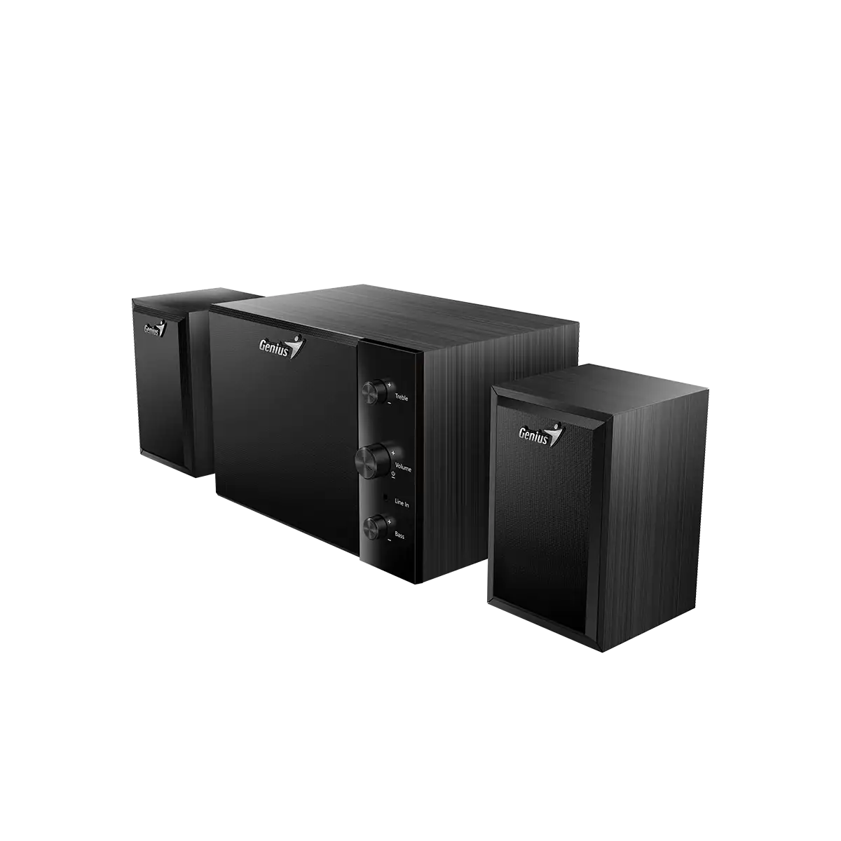 Genius latest 15-watt speaker system SW-2.1 350 is 3-piece high fidelity wood speakers with powerful subwoofer. Its subwoofer has an improved 4” driver to provide deep bass, and each satellite speaker has 2” driver to deliver mid high sound. To enjoy high-quality sound, the Volume, Treble, and Bass are adjustable separately.