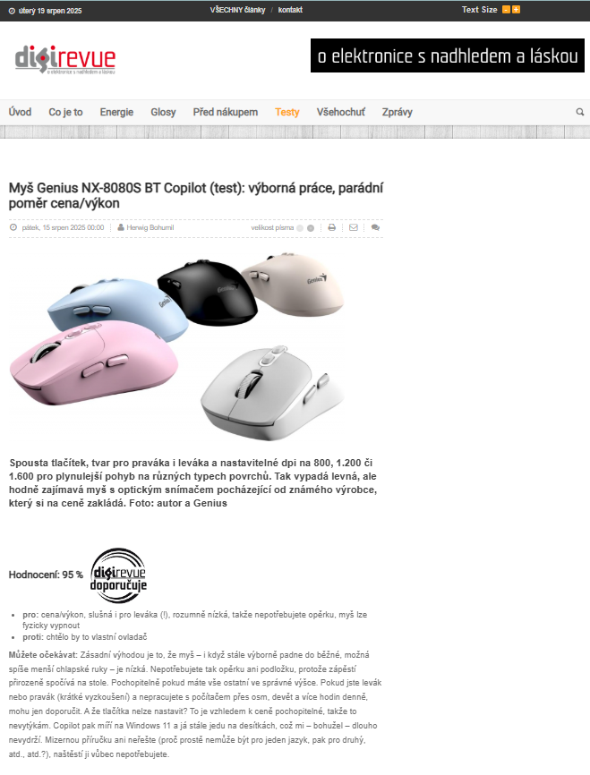NX-8080S BT – Awarded Recommendation by Czech Media Digirevue!