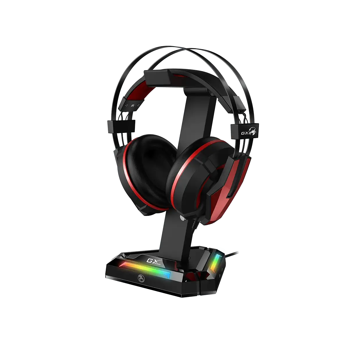 GX-UH100 spojuje stojan na sluchátka s napájecím proužkem pro snadné uložení sluchátek, nabíjení zařízení a efektivní organizaci stolu. Nabízí 8 dynamických RGB světelných módů, včetně vícebarevných efektů a jednobarevných režimů dýchání, což vytváří pohlcující herní atmosféru.
