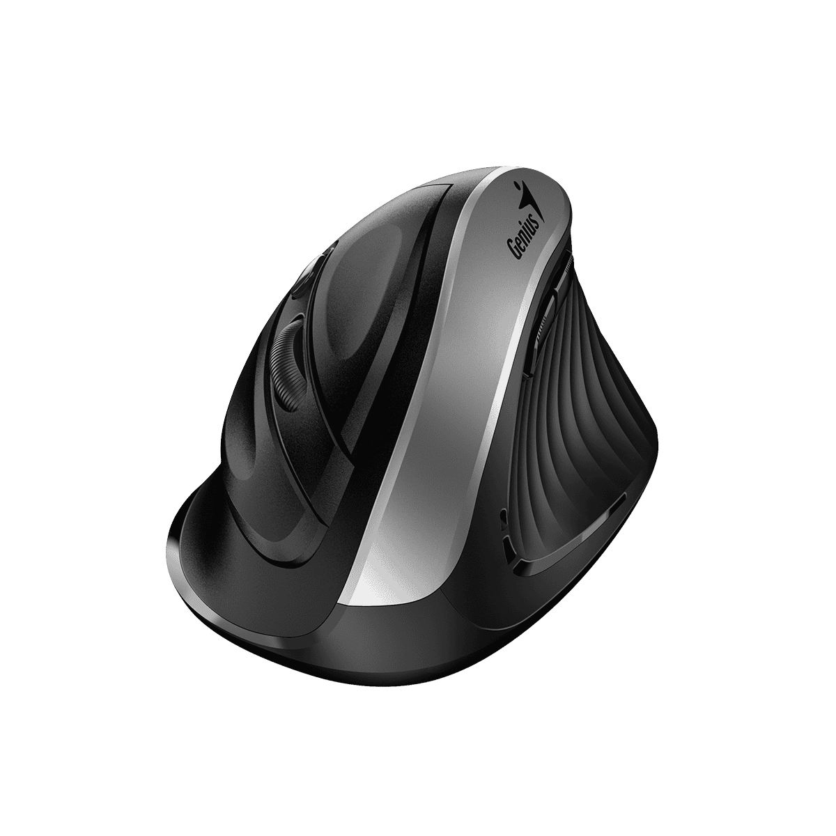 Bezdrátová vertikální ergonomická tichá myš Genius Ergo 8250S umožňuje vaší pravé ruce být v přirozenějším postavení. Toto přirozené ergonomické držení také zmírňuje únavu a namáhání svalů v oblasti předloktí a ramene.