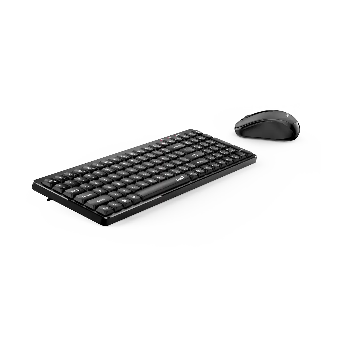 Kombinace klávesnice a myši s bezdrátovou technologií 2.4GHz, dosah až 10 metrů, žádné kabely. Navrženo pro úsporu místa.