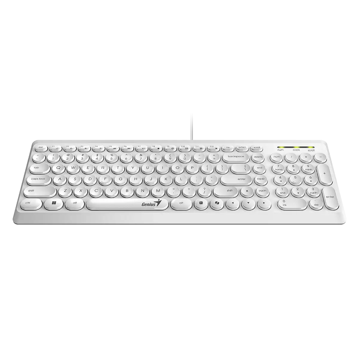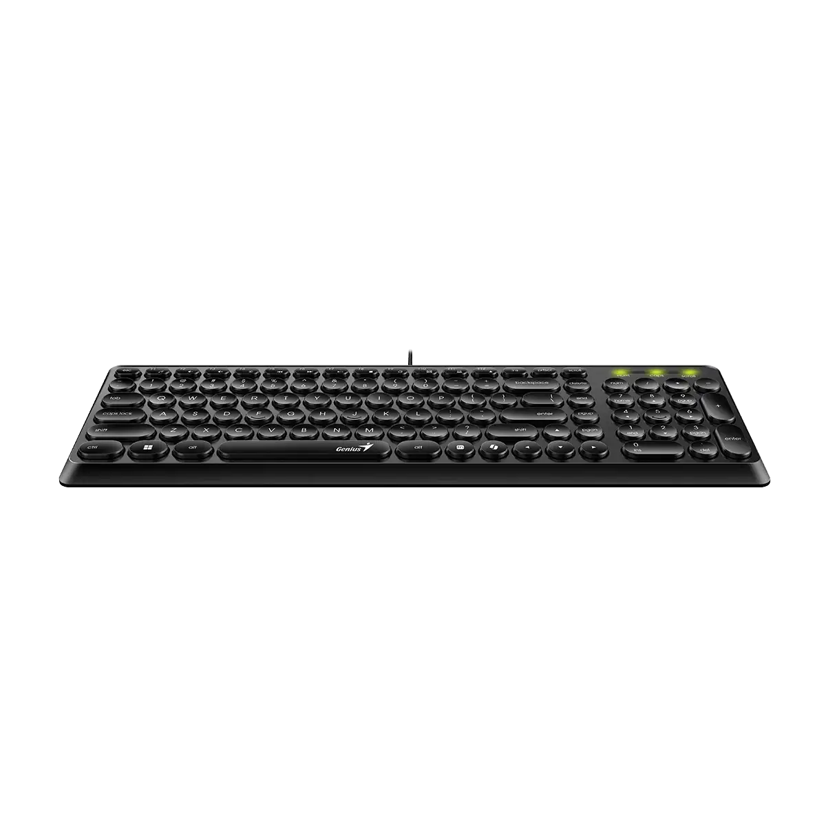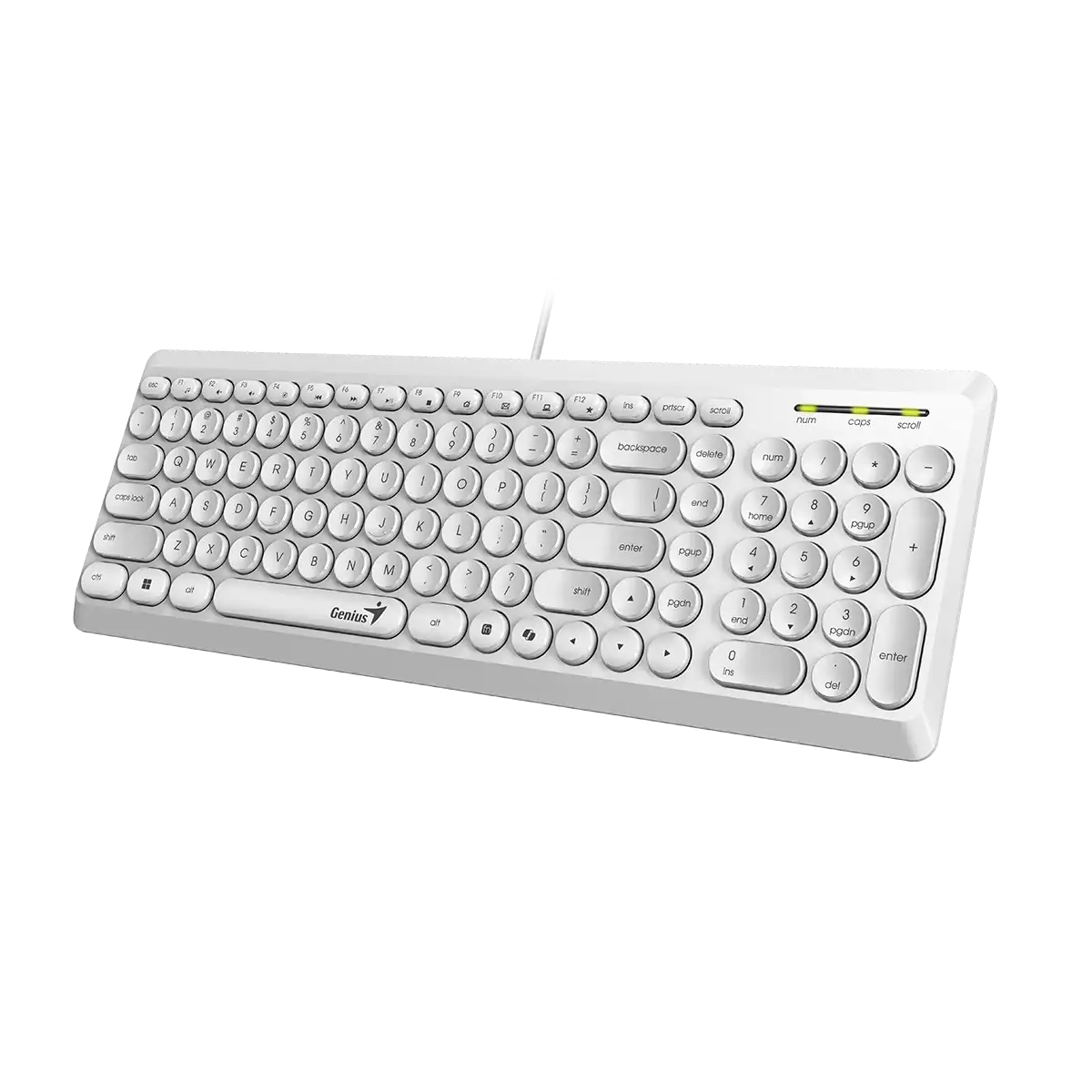 Kulaté klávesy poskytují ideální velikost kontaktní plochy mezi prsty a klávesami, což zajišťuje pohodlnější zážitek z psaní.