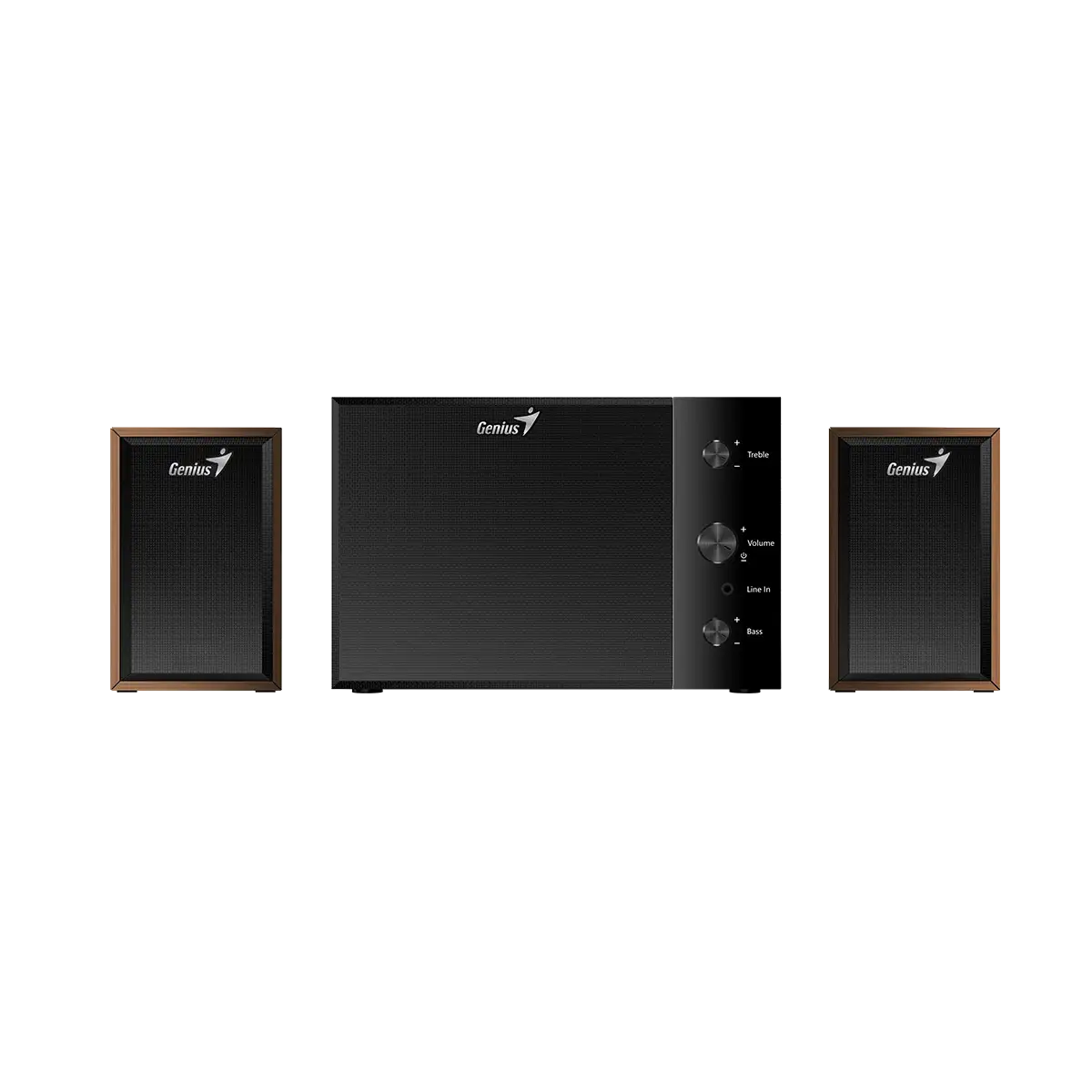 Genius nejnovější 15-wattový reproduktorový systém SW-2.1 350 je tří-dílné high-fidelity dřevěné reproduktory s výkonným subwooferem. Jeho subwoofer má vylepšený 4” měnič pro hluboké basy a každý satelitní reproduktor má 2” měnič pro středně vysoký zvuk. Pro vychutnání si vysoce kvalitního zvuku jsou hlasitost, treble a basy nastavitelné samostatně.