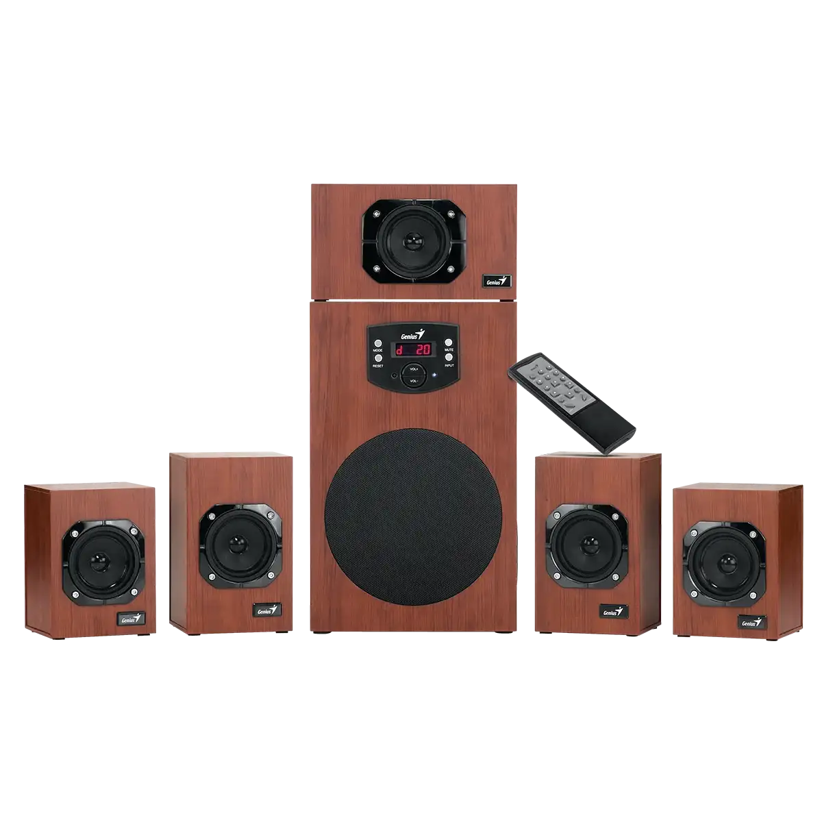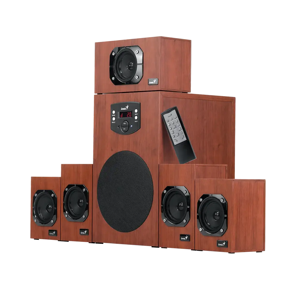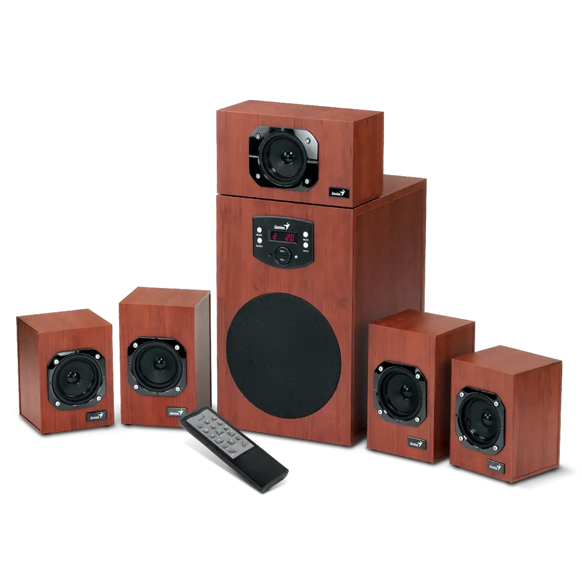 - Systém dřevěných reproduktorů domácího kina se šesti kusy a celkovým výstupním výkonem 125 wattů RMS.